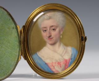 Franse School, portret miniatuur geschilderd op ivoor, 18e eeuw,