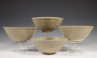 China, vier celadon porseleinen kommen, Noordelijke Song dynastie, 10e-12e eeuw,
