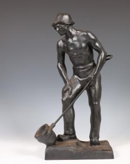 Gietijzeren sculptuur voorstellende een bronsgieter, 20e eeuw,