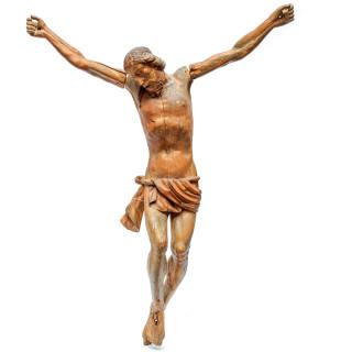 Antique Spanish wooden carved Corpus Christi, 18th century. With traces of polychrome. (alternations).