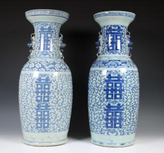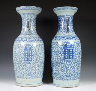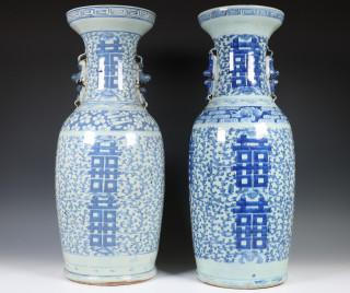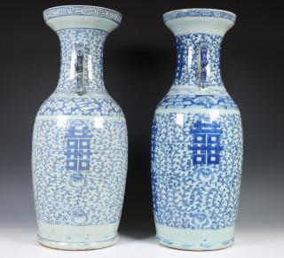 China, paar blauw-wit porseleinen vazen, laat Qing dynastie, 19e eeuw,