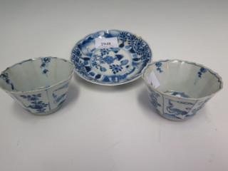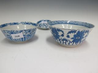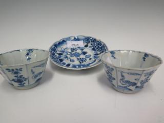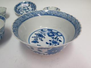 China, vijf stuks blauw-wit porselein, 19e eeuw,
