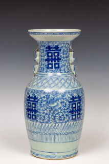 gedecoreerd met shou-symbolen en bloemen, de hals met dubbele leeuwengrepen (haarlijnen), herkomst: Collectie Cserno, Amsterdam