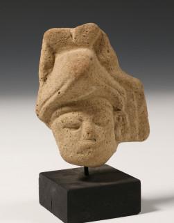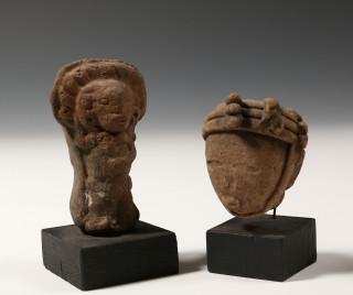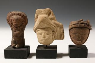 and a Zapotec buste with headdress and earring, 700-1000 AD, herewith a terracotta statue.