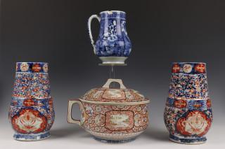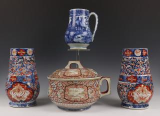 Japan. blauw-wit porseleinen pul, Edo periode, paar Imari vazen en Kutani dekselpot, 19e eeuw,