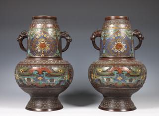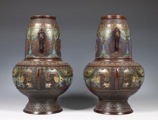 China, paar bronzen cloisonné vazen, begin 20e eeuw,