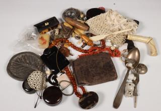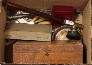 w.o. opiumpijp, vergootglas, celluloid doosjes, benen wandelstokgreep en verzilverd visbestek.