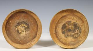 uitgevoerd met geciseleerde decoratie van lint met bladeren. Staande op ronde voet met palmetten.