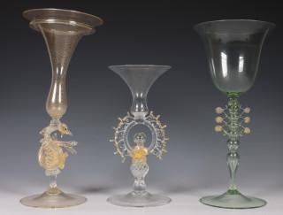 Venetië, twee sier glazen, gesigneerd Pauly, 20e eeuw.