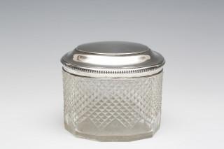 ovaal met diamantslijpsel versierd, opstaande deksel met parelrand, gemerkt zwaardje,