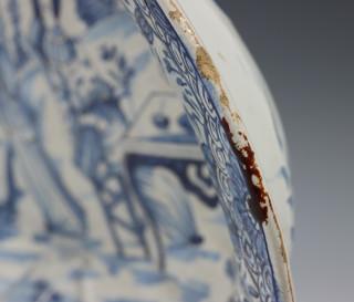 Frankrijk/ België, blauw-witte faience diepe geplooide Chinoiserie kom, ca. 1900,