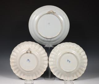 Frankrijk, twee polychrome aardewerken plooiborden en een schotel, 20ste eeuw,