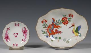Royal Kopenhagen, porseleinen dekselschaal en Meissen, twee porseleinen schoteltjes, 20ste eeuw,