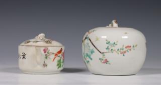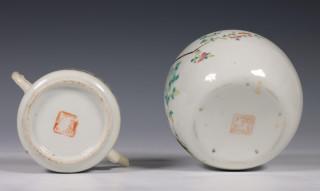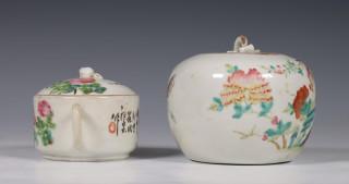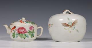 China, famille rose porseleinen dekselpot en theepot, ca. 1900 en later,