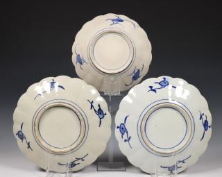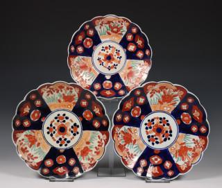 Japan, drie Imari porseleinen chrysantvormige borden, Meiji periode,