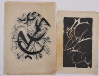 twaal linosnedes op Japans papier, deels beschadigd, niet ingelijst, genummerd, gesign., volledige blad 50 x 36 cm. en litho, gesign., '52, 7/10, volledig blad 46 x 31 cm.