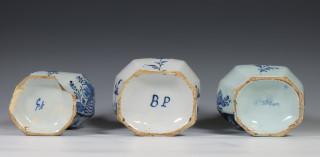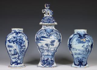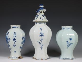 Delft, drie aardewerk vazen, diverse manufacturen, 18e eeuw.