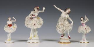 Vier porseleinen groepjes, ca. 1900.