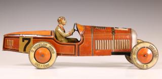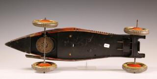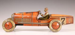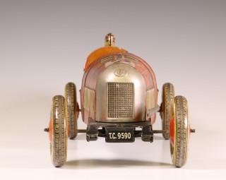 UItgevoerd in gelithografeerd blik met opwind mechanisme. Compleet met racer nummer 7, Dunlop cord banden, kenteken T.C.9590