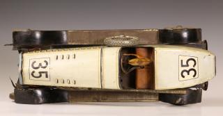 Uitgevoerd in gelithografeerd blik. Originele racer nummer 35. Kentekenplaat J.D.N. 3715.