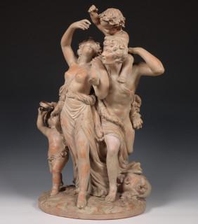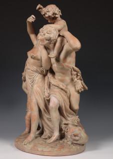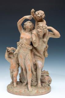 Claude Michel (1738-1814), terracotta groep, gesigneerd 'Clodion', 19e/20e eeuw.