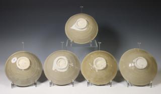 China, vijf celadon porseleinen kommen, Noordelijke Song-dynastie, 10e-12e eeuw,