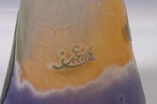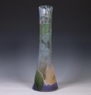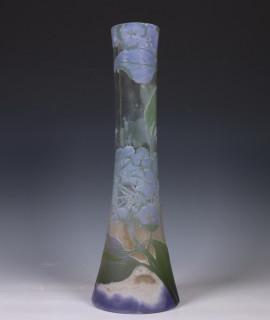 Mogelijk Emile Gallé, dikwandig cameo glazen vaas met geëtst decor van viooltjes, 20e eeuw