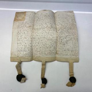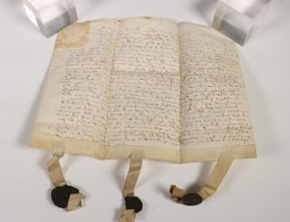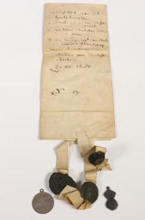Hierbij een manuscript, 1680, met 3 lakzegels aan document (gebroken). Hierbij een collectie naslagwerk numismatiek, De Beeldenaar 26e jrg 2002 no. 5-6/ 29e jrg 2005 no. 6