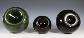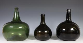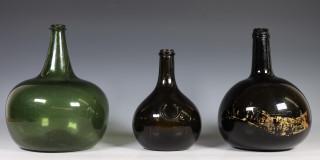Blank glazen en drie groenglazen flessen, 18e eeuw,
