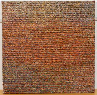 doek, verso gesign., kleine beschadigingen, 1985-1986, 51 x 51 cm.