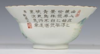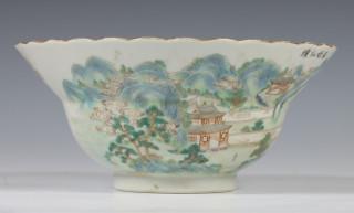 China, famille verte porseleinen gelobde 'landschap' kom, 19e eeuw,