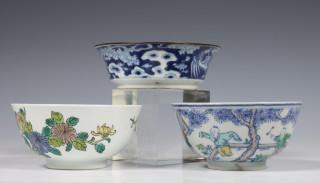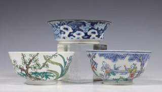 China, drie porseleinen kommen, 19e-20ste eeuw,