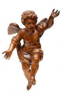 Duitsland, eikenhouten hangende sculptuur van putto, Barok, 18e eeuw.