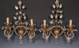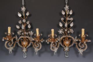 A pair of Maison Baguès two-light wall appliques, ca. 1940.