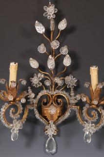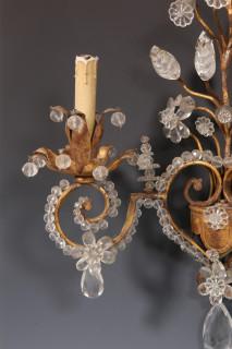 Frankrijk, paar goud gelakte metalen tweelichts appliques, Maison Baguès, ca. 1940.