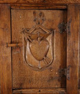 Eikenhouten lessenaar/preekgestoelte samengesteld met Laat Gotische panelen en onderdelen.