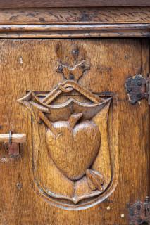 Met deurtje, briefpanelen en ronde gaten voor perkamentrollen. Op slofpoten.