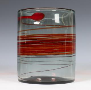 Denemarken, Per Lütken voor Holmegaard, glazen bloemenvaas met rode draad patroon.