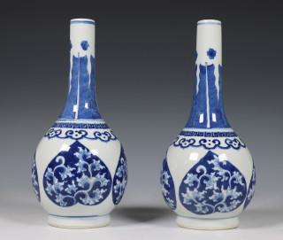 China, paar blauw-wit porseleinen puntvazen, 19e/20ste eeuw,
