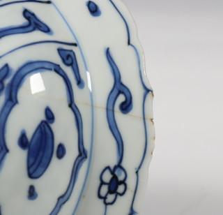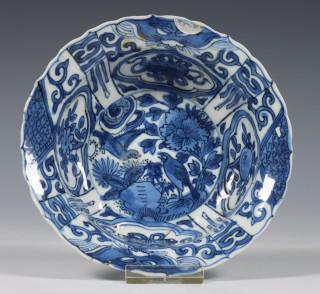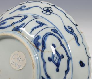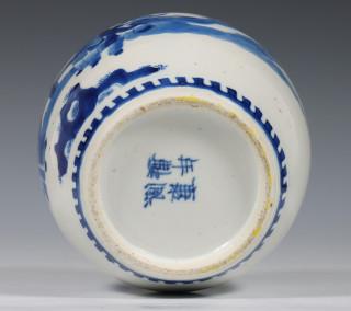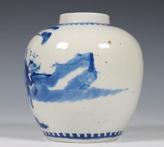 China, blauw-wit porseleinen kom, gemberpot en schoteltje, Wanli periode en later,