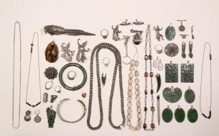 Diverse nefriet hangers, zilveren sieraden en bijous.