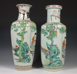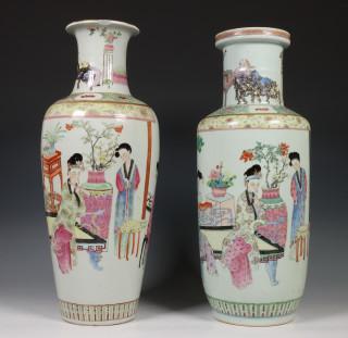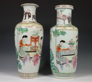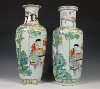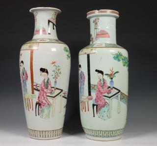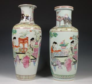 China, twee famille rose porseleinen balustervazen, 20e eeuw,