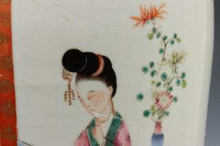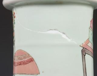 China, two famille rose porcelain baluster vases, 20th century, each decorated with ladies in an interior with flower vase (damages and repair), provenance: Dutch private collection