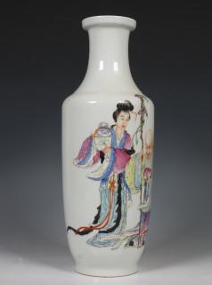 China, famille rose porcelain ' Shoulao' vase, 20th century, decorated with Shoulao with his staff and peach, a lady with jar beside him, provenance: Dutch private collection