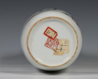 gedecoreerd met Shoulao met zijn staf en perzik, een dame met vaas naast hem, de onderzijde met zegelmerk