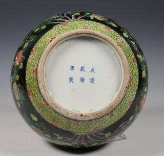 elk gedecoreerd met feniksen temidden van chrysanten op een zwarte grond, elk met apocrief Qianlong merk (randschade en restoratie)