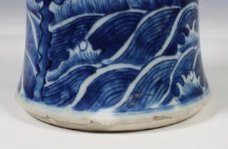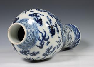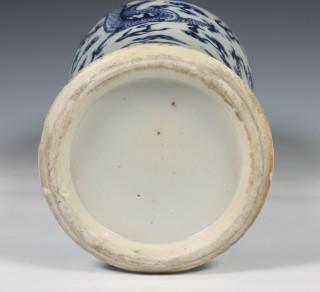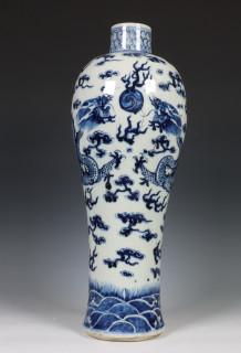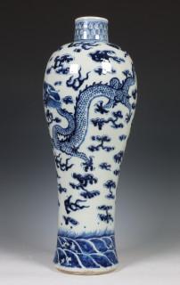 China, blauw-wit porseleinen 'draken' vaas, 19e-20e eeuw,