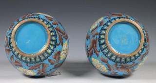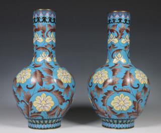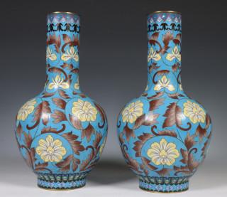Japan, pair of cloisonné vases, 20th century, decorated with flowering branches on a turquoise ground, provenance: Dutch private collection