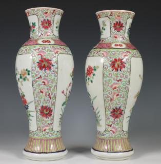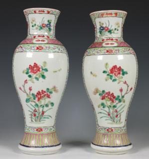 China, paar famille rose porseleinen balustervazen, late Qing-dynastie,