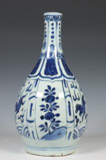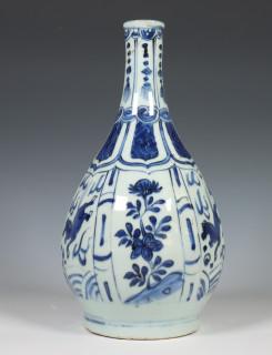 China, blauw-wit ' kraak' porseleinen fles, Wanli,